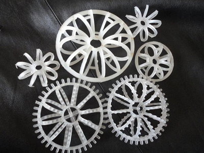 花環填料隙空率大,不易堵塞,通量大,阻力小。由于這種填料的間隙處能有較高的滯液量,可使塔內液體停留時間較長,從而增加了氣液的 接觸時間,提高了效率。